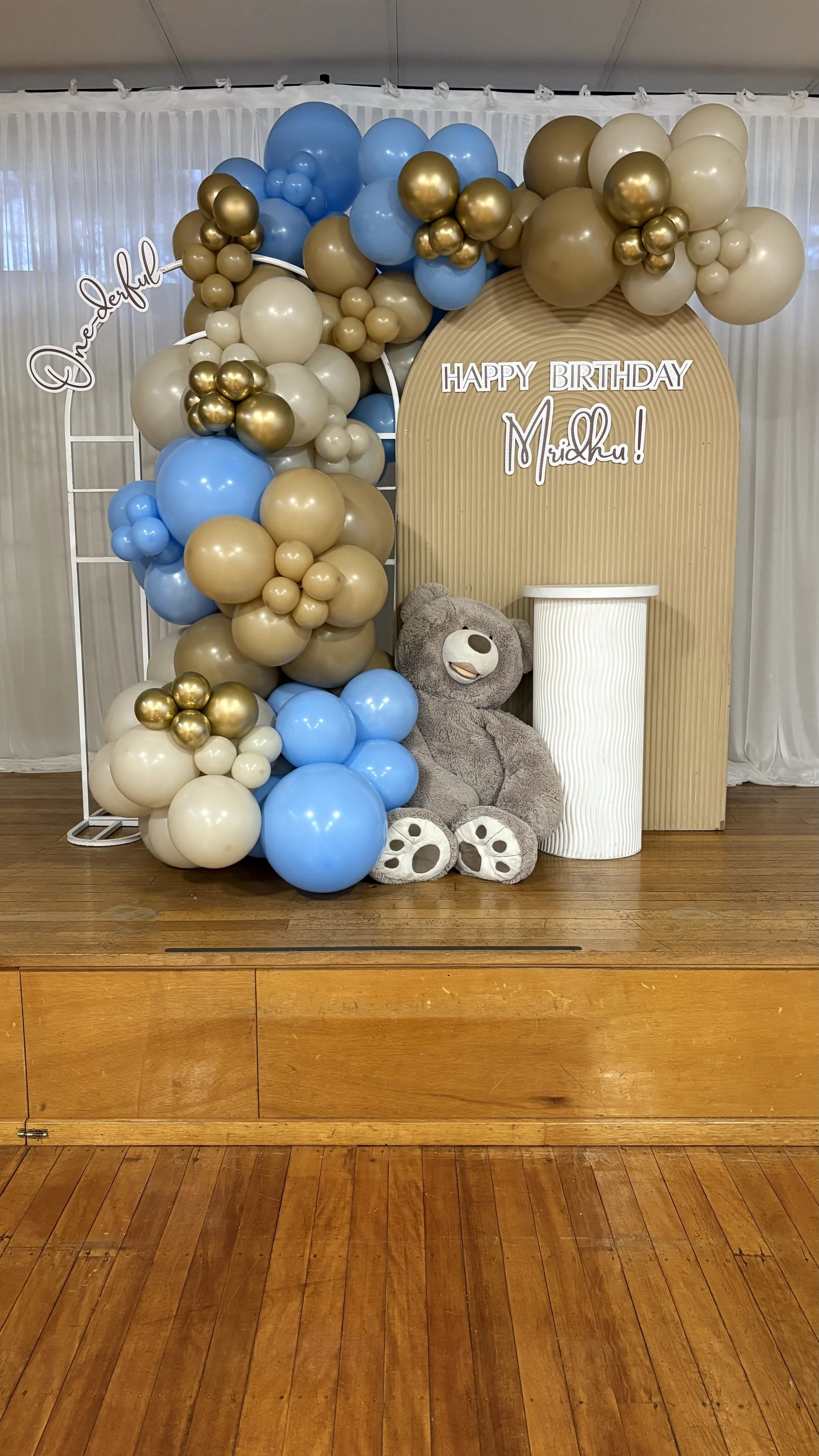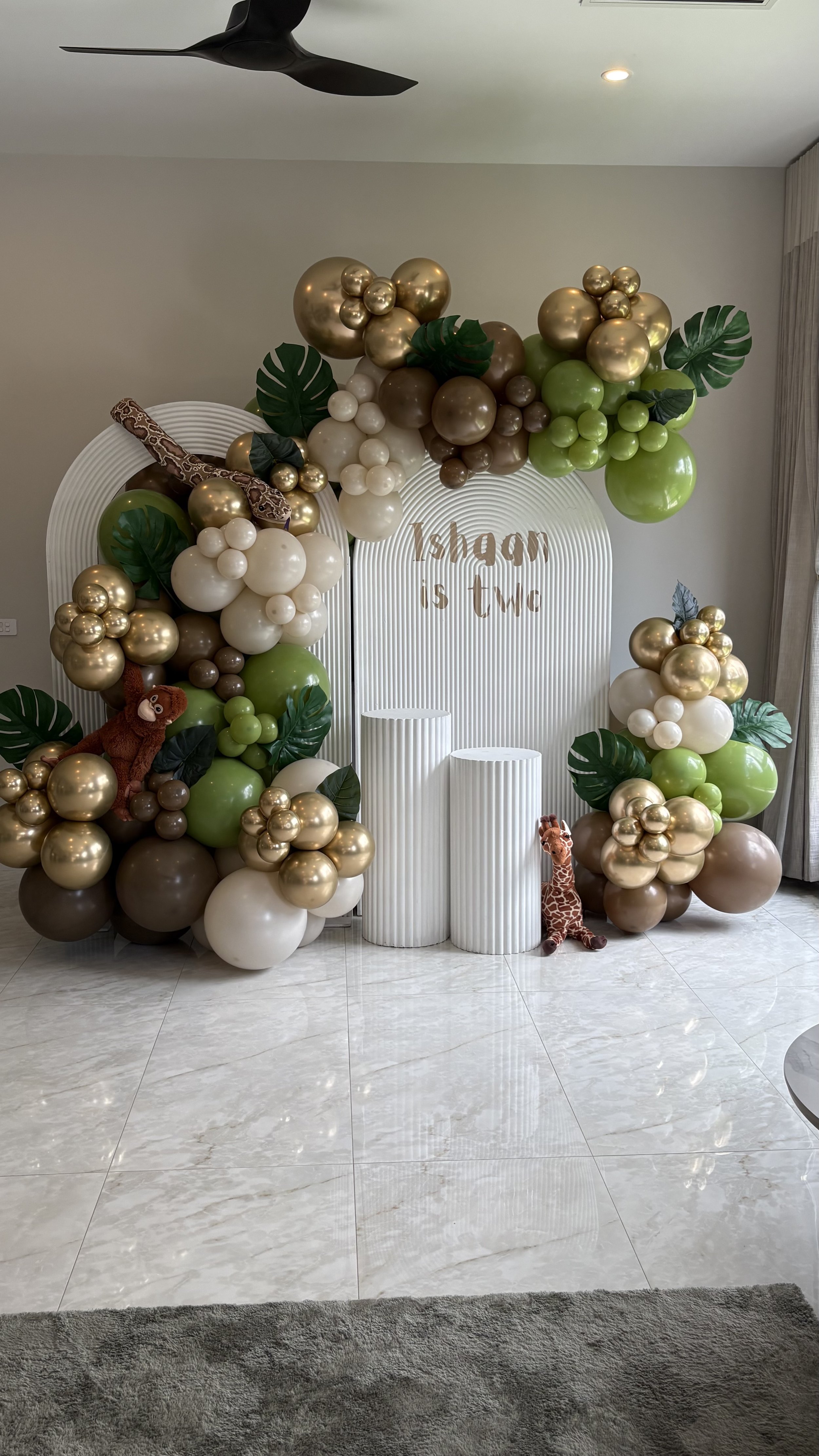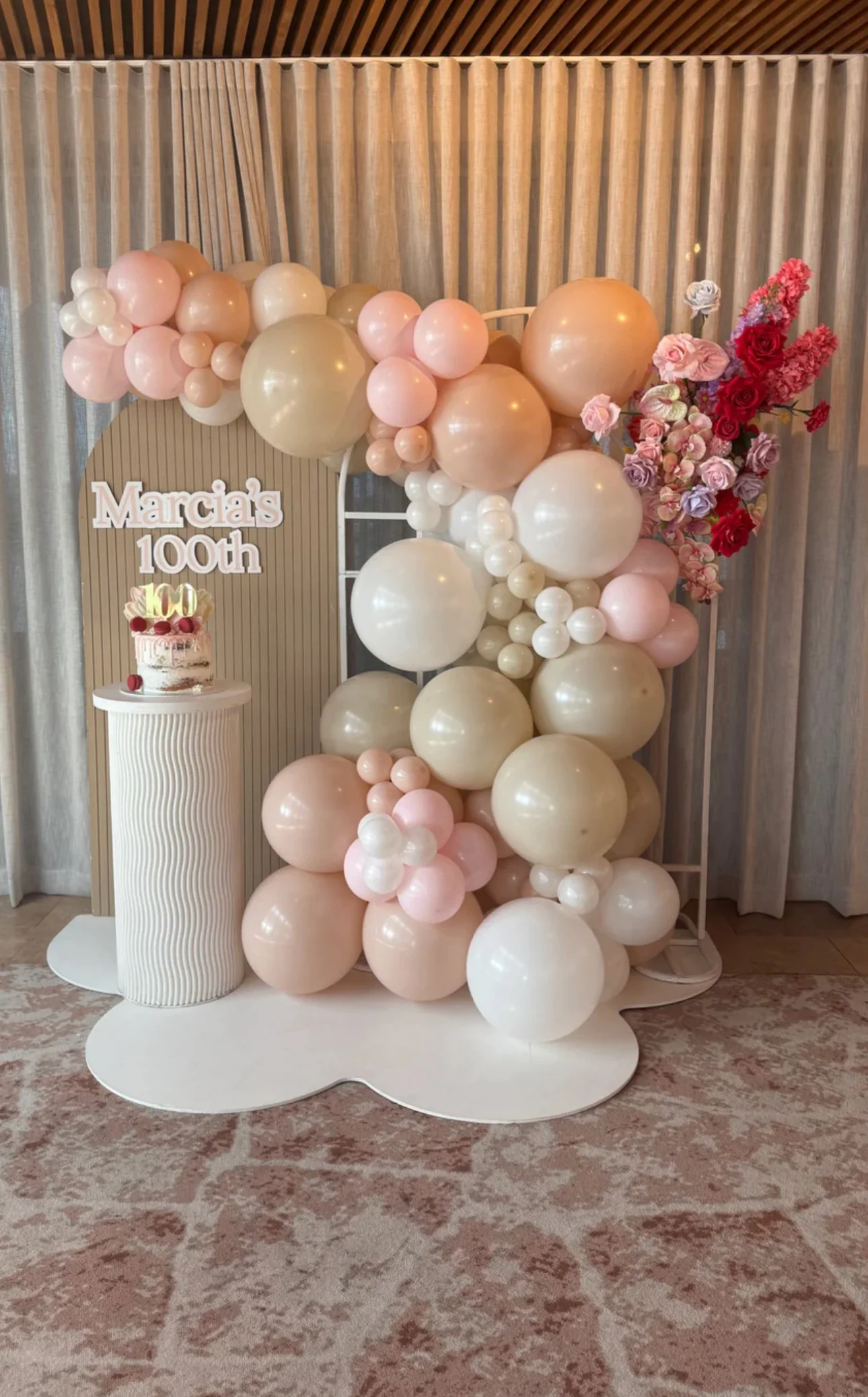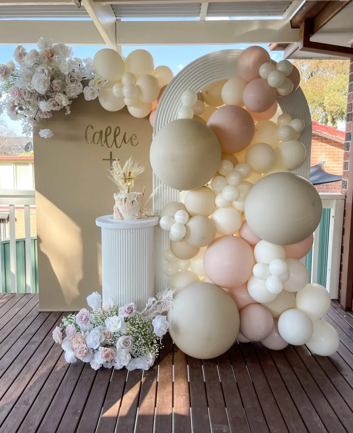 Inclusions: Two backdrops, decal, cake stand + 5m balloon garland.